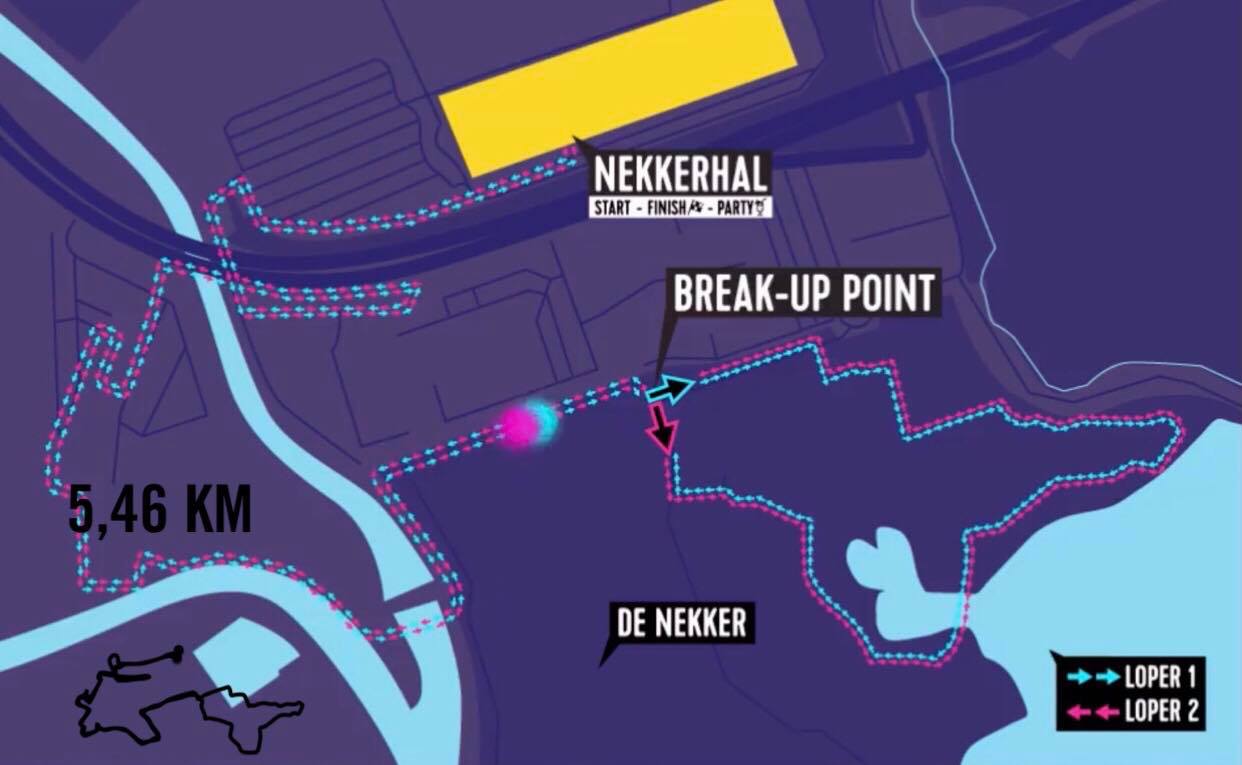 The excitement, however, does not only come from the cool decorations and non-competitive atmosphere. It is also brought up by the concept of the run: the Q Run to You is a duo run that does not allow single runners to join. Somewhere in the middle of the track, the duo’s are separated and the idea is then to run their ways back to each other and finish the race together.
